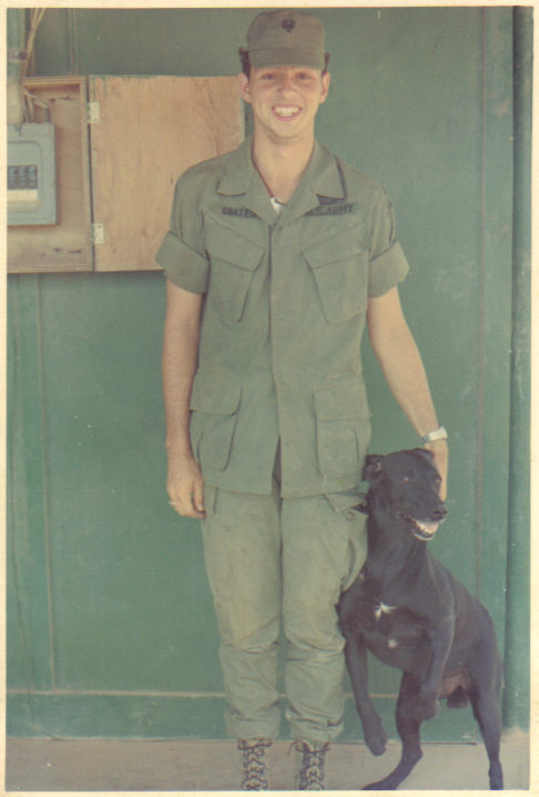 Sp/4 Grant T. Coates and "Shane" at 199th Light Infantry Brigade main Base, Long Bien. 1968